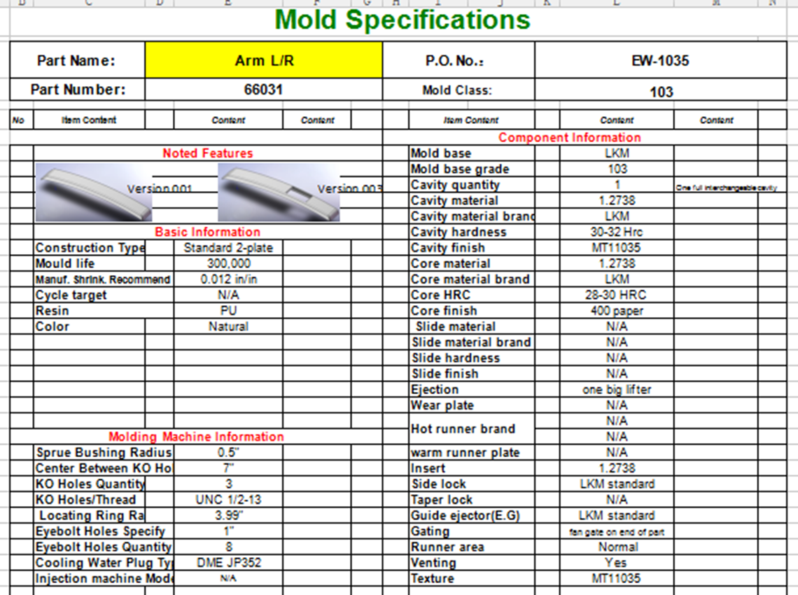 Final product data and tool specification will be provided to design engineer for any new tool.